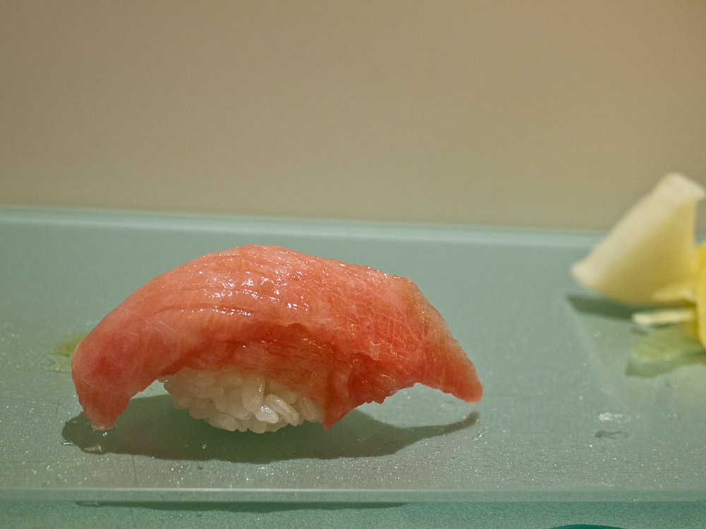 鮪魚握壽司, 好油好嫩, 入口即化, 非常好吃, 但油脂含量高, 容易膩, 不能多吃, 一片即可.